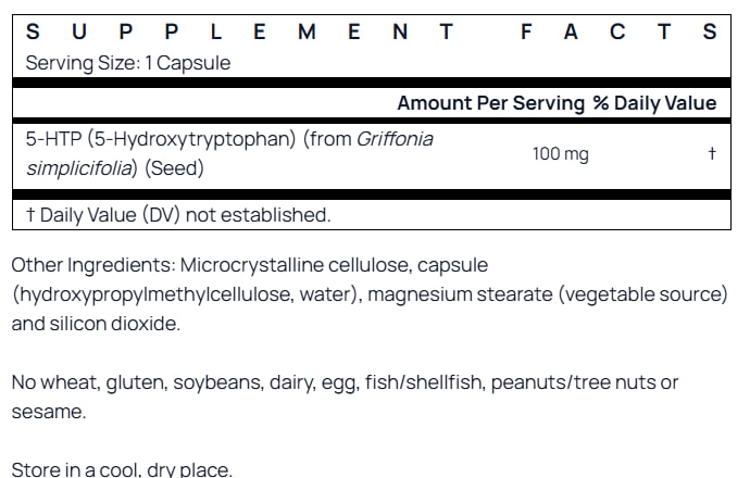 5-HTP (5-гидрокситриптофан) — природная аминокислота, предшественник серотонина (гормона радости) и мелатонина (гормона сна). Не синтезируется в организме — получается из триптофана, содержащегося в пище (индейка, бананы, орехи), или из экстракта африканского растения Griffonia simplicifolia. 5-HTP восполняет дефицит серотонина, вызванный стрессом, недоеданием или высокими нагрузками.