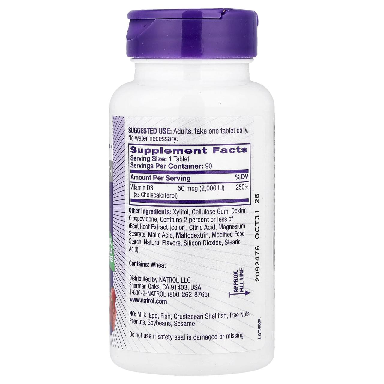 Natrol Витамин D3 Fast Dissolve выпускается со вкусом клубники, имеет прекрасный вкус и может приниматься в любое время и в любом месте. Вода не нужна. Он быстро действует и идеально подходит для тех, кому трудно глотать витамины и добавки. Витамин D3