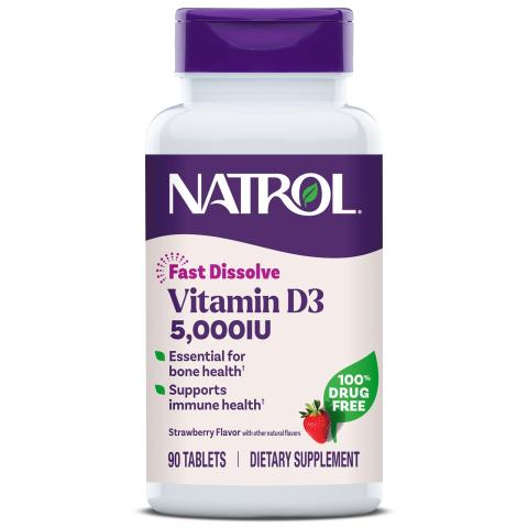 Natrol Витамин D3 Fast Dissolve выпускается со вкусом клубники, имеет прекрасный вкус и может приниматься в любое время и в любом месте. Вода не нужна. Он быстро действует и идеально подходит для тех, кому трудно глотать витамины и добавки. Витамин D3
