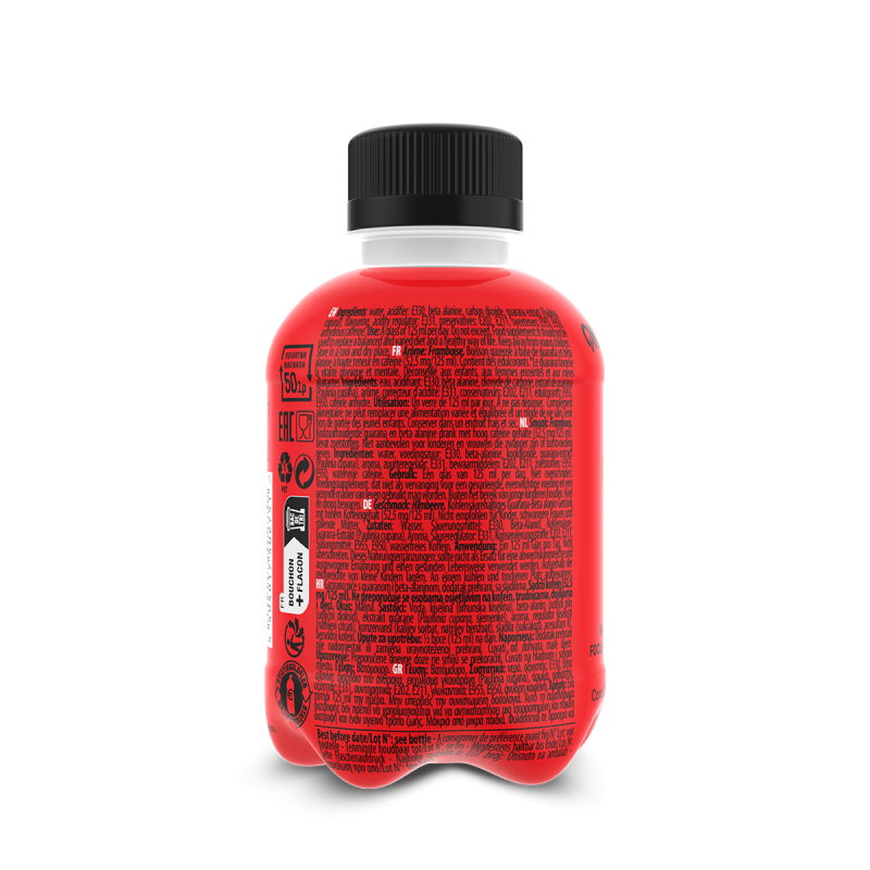 Данный эффекти достигается благодаря уникальной формуле, обогащенной экстрактом семян гуараны (Paullinia Cupana) и безводным кофеином! Вода, подкислитель: E330, бета-аланин, двуокись углерода, экстракт гуараны, ароматизатор, регулятор кислотности: E331, консерванты: E202, E211, подсластители: E955, E950, безводный кофеин.