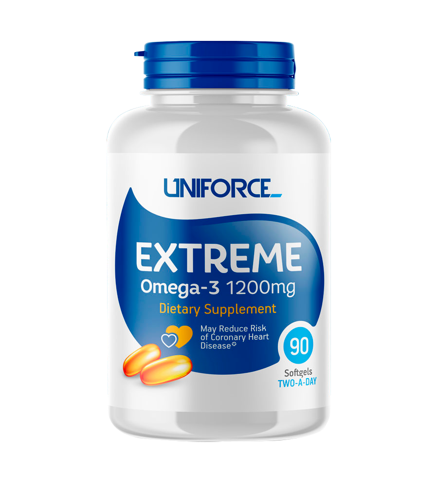 Fish Oil от Uniforce – это уникальное сочетание высококачественных омега-3 жирных кислот в повышенной дозировке 1200мг. Несмотря на высокое содержание рыбьего жира, Uniforce удалось добиться минимального размера капсул, что делает возможным употребление добавки даже девушкам и подросткам. На каждую порцию Extreme Omega-3 1200mg от Uniforce приходится 790мг EPA и 530мг DHA, что является высочайшим показателем концентрации на рынке! Рыбий жир – базовый элемент в жизнедеятельности человека, а его систематическое употребление рекомендовано уже с 18 лет.