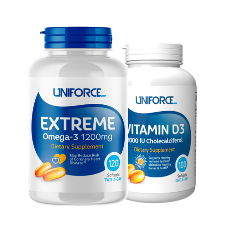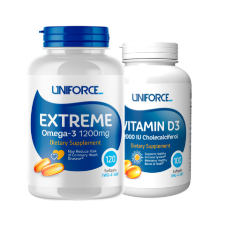 Представляем вашему вниманию специальный набор от Uniforce, который включает в себя два ключевых продукта для поддержания вашего здоровья и благополучия: Omega-3 рыбий жир и Витамин D3. Этот набор создан для тех, кто стремится укрепить свое здоровье и защитить организм от внешних негативных факторов.