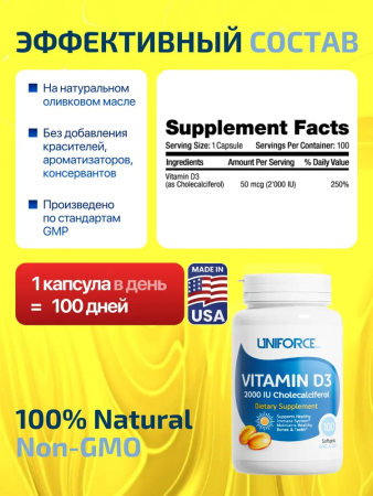 Uniforce Vitamin D3 2000 Ед 100 Капсул